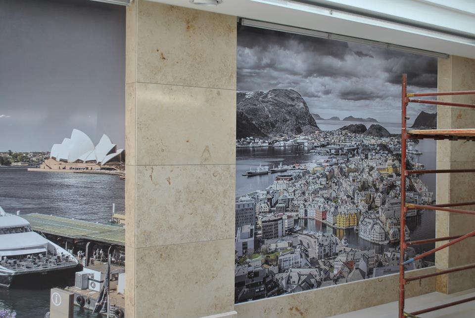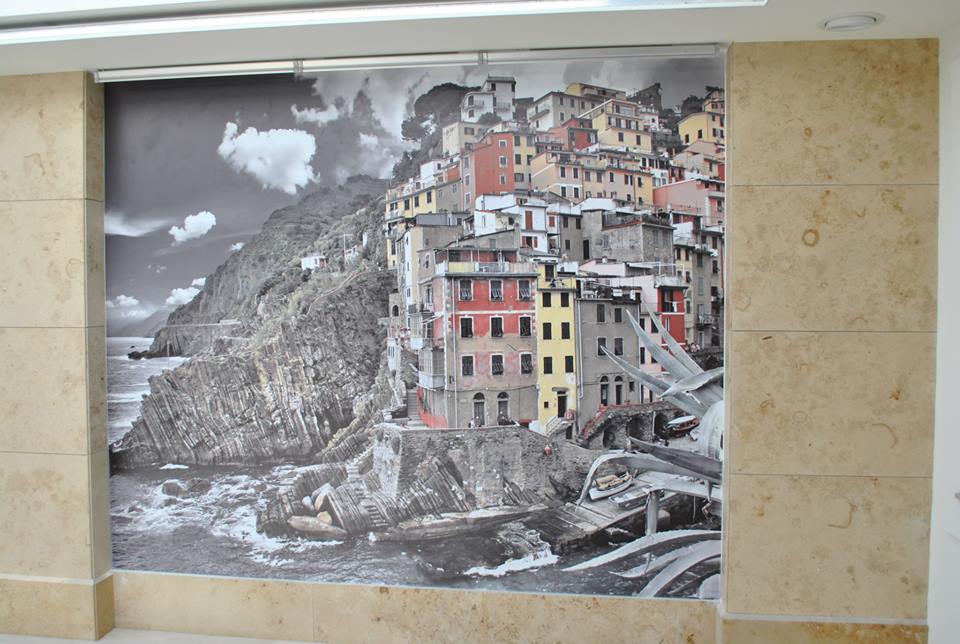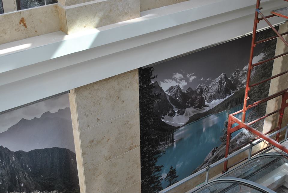 Falmatrica dekorációk készítése, teljes falak bevonása. A falmatricákat speciális matt fóliára nyomtatjuk, amit laminátummal is ellátjuk. A falmatricát általában 120 cm szélességre szegmentáljuk és 1 cm átfedéssel kasírozzuk a falra. A falmatricák kasírozása esetében nagyon fontos a hibátlan falfelület és a megfelelő minőségű festés, előkészítés.