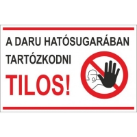 A daru hatósugarában tartózkodni tilos tábla kültéri kivitelben, 3 mm habosított PVC táblára kasírozva, A4 méretben.