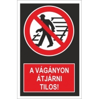 A vágányon átjárni tilos tábla, kültéri kivitelben, 3 mm habosított PVC táblára kasírozva, A4 méretben.