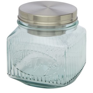 100%-ban újrahasznosított üveg salátástál 800 ml-es űrtartalommal, amely kiválóan alkalmas nagy adag saláta tárolására vagy szállítására. A rozsdamentes csavaros fedél alatt egy kis betét található öntetekhez, szószokhoz vagy joghurtokhoz. A saláta ropogós és friss marad az üvegedényben! Az újrahasznosított üveg gyártása kevesebb energia, nyersanyag és adalékanyag felhasználásával történik, mint amennyi a hagyományos üveggyártáshoz szükséges. Mosogatógépben mosható.