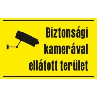 Biztonsági kamerával ellátott terület tábla kültéri kivitelben, 3 mm habosított PVC táblára kasírozva, A4 méretben.