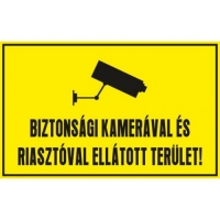 Biztonsági kamerával és riasztóval ellátott terület tábla kültéri kivitelben, 3 mm habosított PVC táblára kasírozva, A4 méretben.