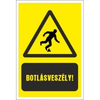 Botlásveszély tábla kültéri kivitelben, 3 mm habosított PVC táblára kasírozva, A4 méretben.