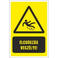 Elcsúszás veszélye tábla kültéri kivitelben, 3 mm habosított PVC táblára kasírozva, A4 méretben.
