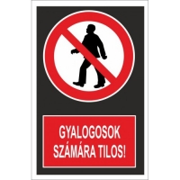 Gyalogosok számára tilos tábla, kültéri kivitelben, 3 mm habosított PVC táblára kasírozva, A4 méretben.