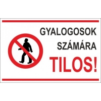 Gyalogosok számára tilos tábla (fekvő), kültéri kivitelben, 3 mm habosított PVC táblára kasírozva, A4 méretben.