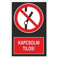 Kapcsolni tilos tábla, kültéri kivitelben, 3 mm habosított PVC táblára kasírozva, A4 méretben.