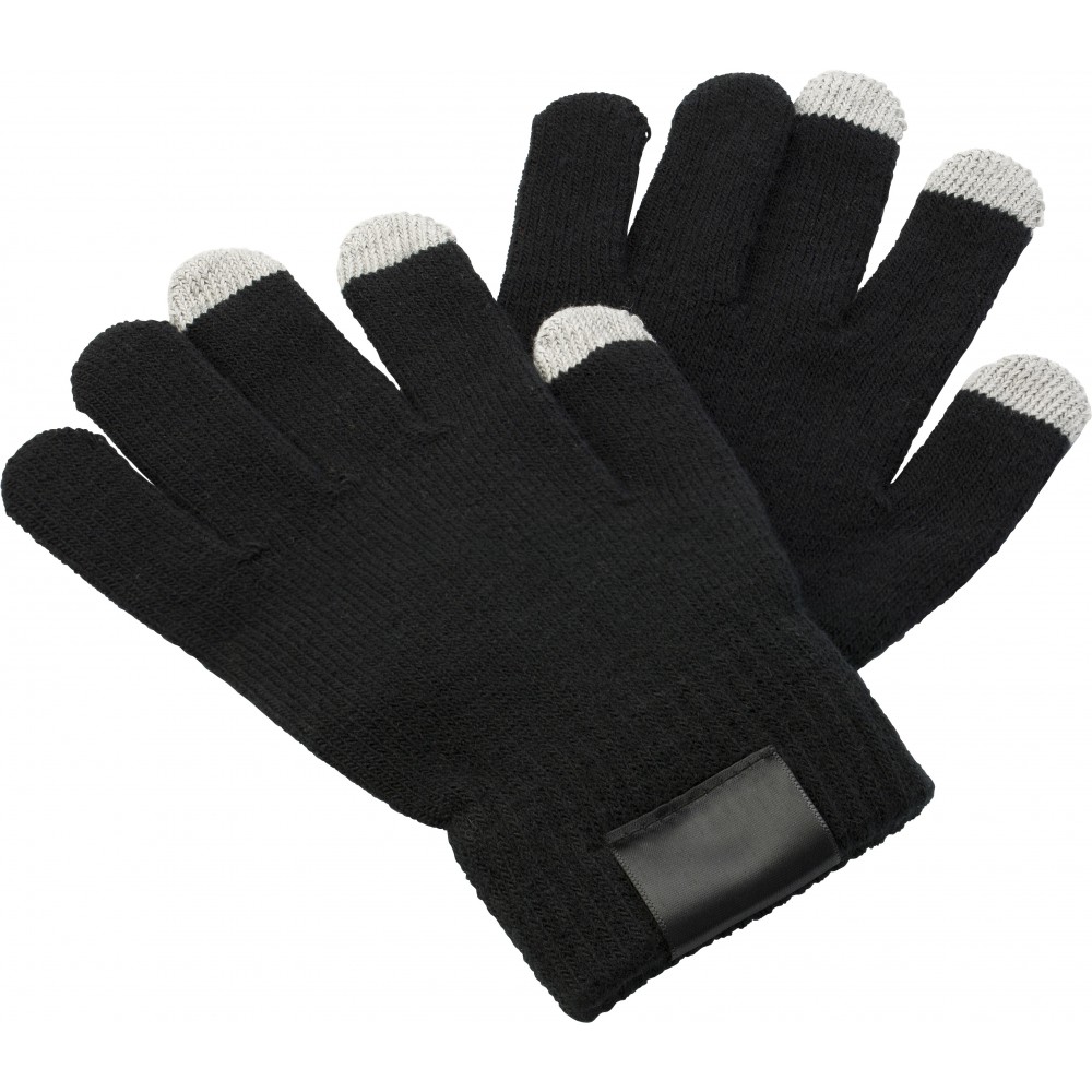 Kesztyű, mely három ujjában (hüvelyk, mutató, középső) érintőképernyők kezelésére alkalmas érintőt rejt.