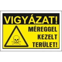 Méreggel kezelt terület figyelmeztető tábla kültéri kivitelben, 3 mm habosított PVC táblára kasírozva, A4 méretben.