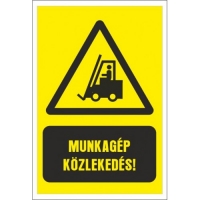 Munkagép közlekedés figyelmeztető tábla kültéri kivitelben, 3 mm habosított PVC táblára kasírozva, A4 méretben.