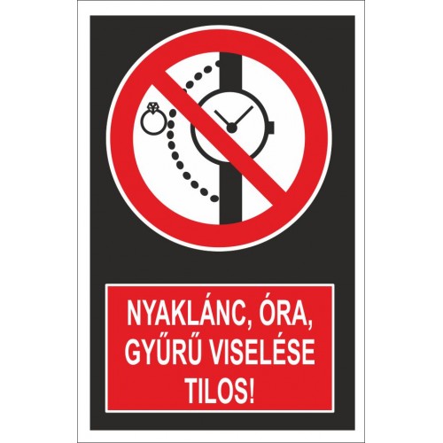 Nyaklánc, gyűrű, óra viselése tilos tábla