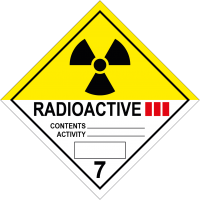 Radioaktív anyag III. ADR munkavédelmi tábla, 3 mm habosított PVC táblára kasírozva, 30x30 cm méretben.