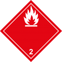 Tűzveszélyes gáz ADR munkavédelmi tábla, 3 mm habosított PVC táblára kasírozva, 30x30 cm méretben.