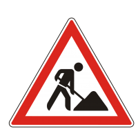 Úton folyó munkák tábla, 3 mm habosított PVC táblára kasírozva, 60x60 cm méretben.