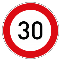 Sebességkorlátozás 30 tábla, 3 mm habosított PVC táblára kasírozva, 60 cm átmérő méretben.