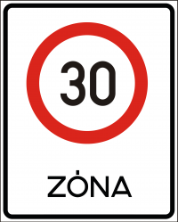 Korlátozott sebességű övezet tábla, 3 mm habosított PVC táblára kasírozva, 48x60 cm méretben.