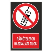 Rádiótelefon használata tilos tábla, 3 mm habosított PVC táblára kasírozva, A4 méretben.