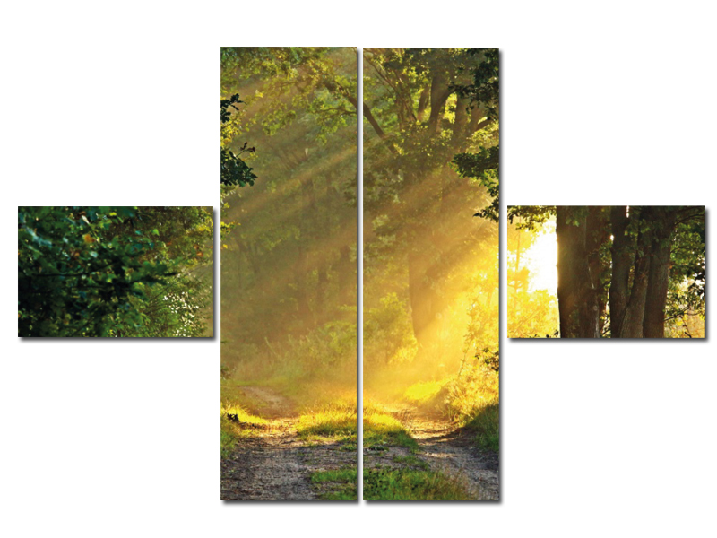 Több részes vászonkép napos erdő, 2 cm vakrámára feszítve.