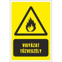 Tűzveszély figyelmeztető tábla kültéri kivitelben, 3 mm habosított PVC táblára kasírozva, A4 méretben.