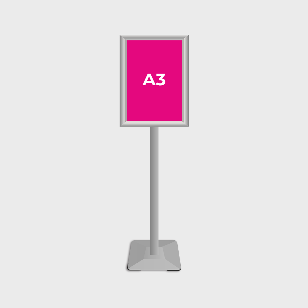 Várakoztató táblák különböző kivitelben, eloxált alumínium talppal és oszloppal.