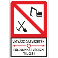 Vigyázz gázvezeték tábla kültéri kivitelben, 3 mm habosított PVC táblára kasírozva, A4 méretben.