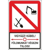 Vigyázz kábel tábla kültéri kivitelben, 3 mm habosított PVC táblára kasírozva, A4 méretben.